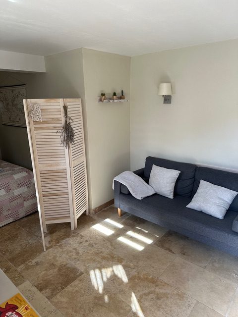 Pour 2 personnes, un petit salon agréable avec un coin couchage avec un lit double, une belle salle d’eau avec douche, une cuisine équipée, cuisson à induction…